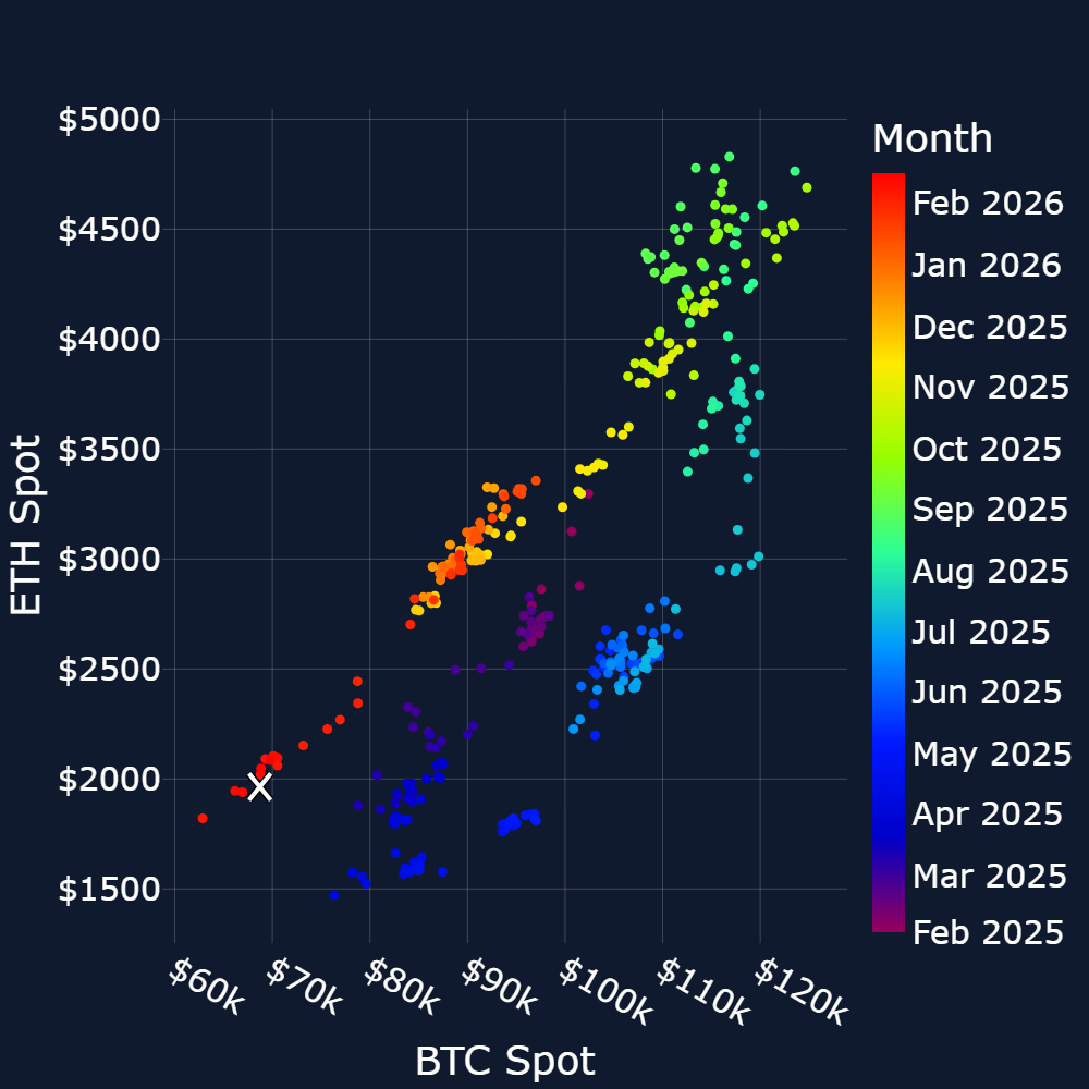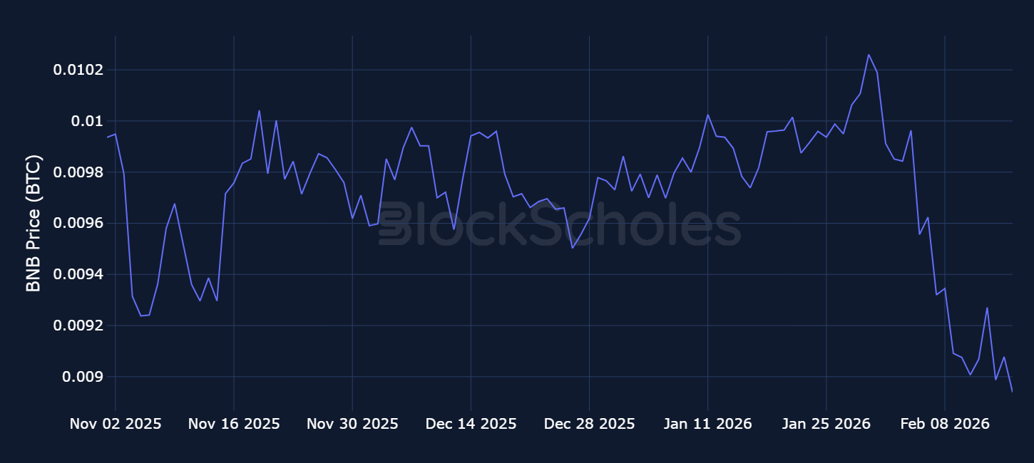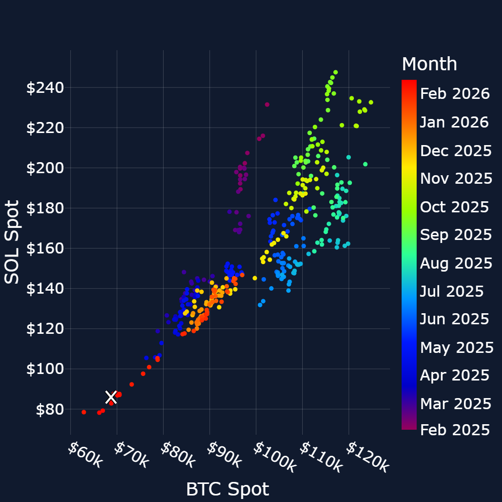 Altcoins Outperformance – ETH underperformed BTC by 5% on Feb. 16. In comparison, XRP and SOL both outperformed: SOL rose 3.6% and 3.2% relative to BTC on consecutive days following earlier-week underperformance, while XRP saw a one-day 5.9% outperformance relative to BTC and otherwise moved more in line with BTC returns for the rest of the week.