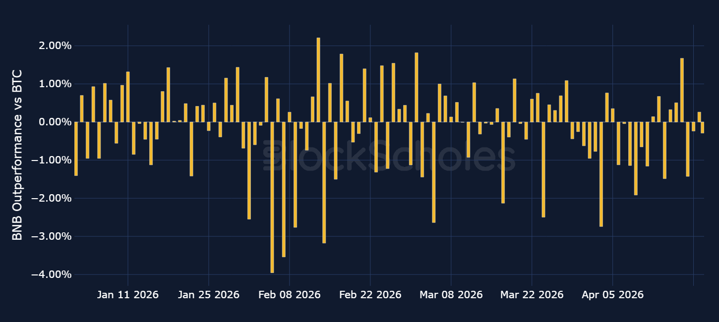 Daily relative simple returns vs BTC: BNB