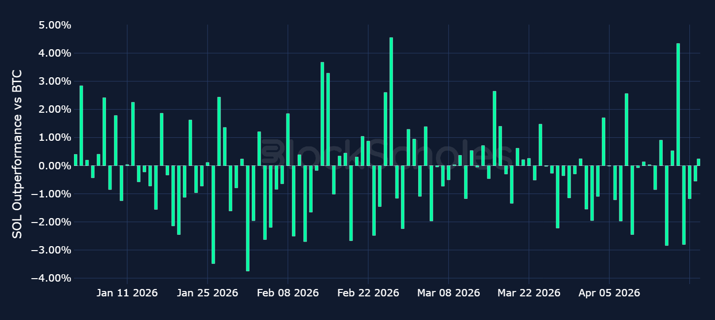 Daily relative simple returns vs BTC: SOL