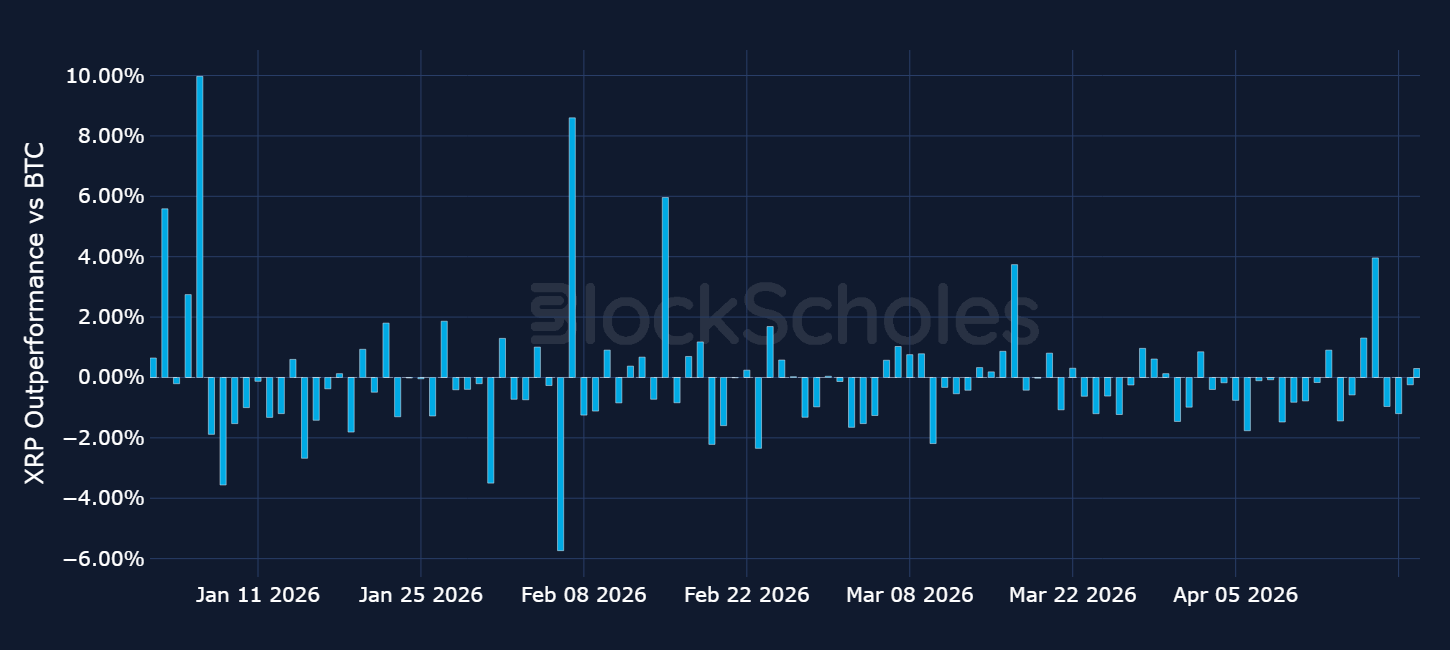 Daily relative simple returns vs BTC: XRP