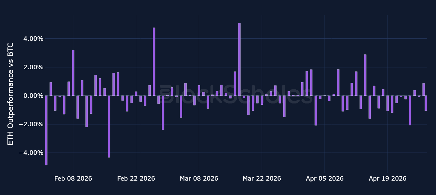 Daily relative simple returns vs BTC: ETH