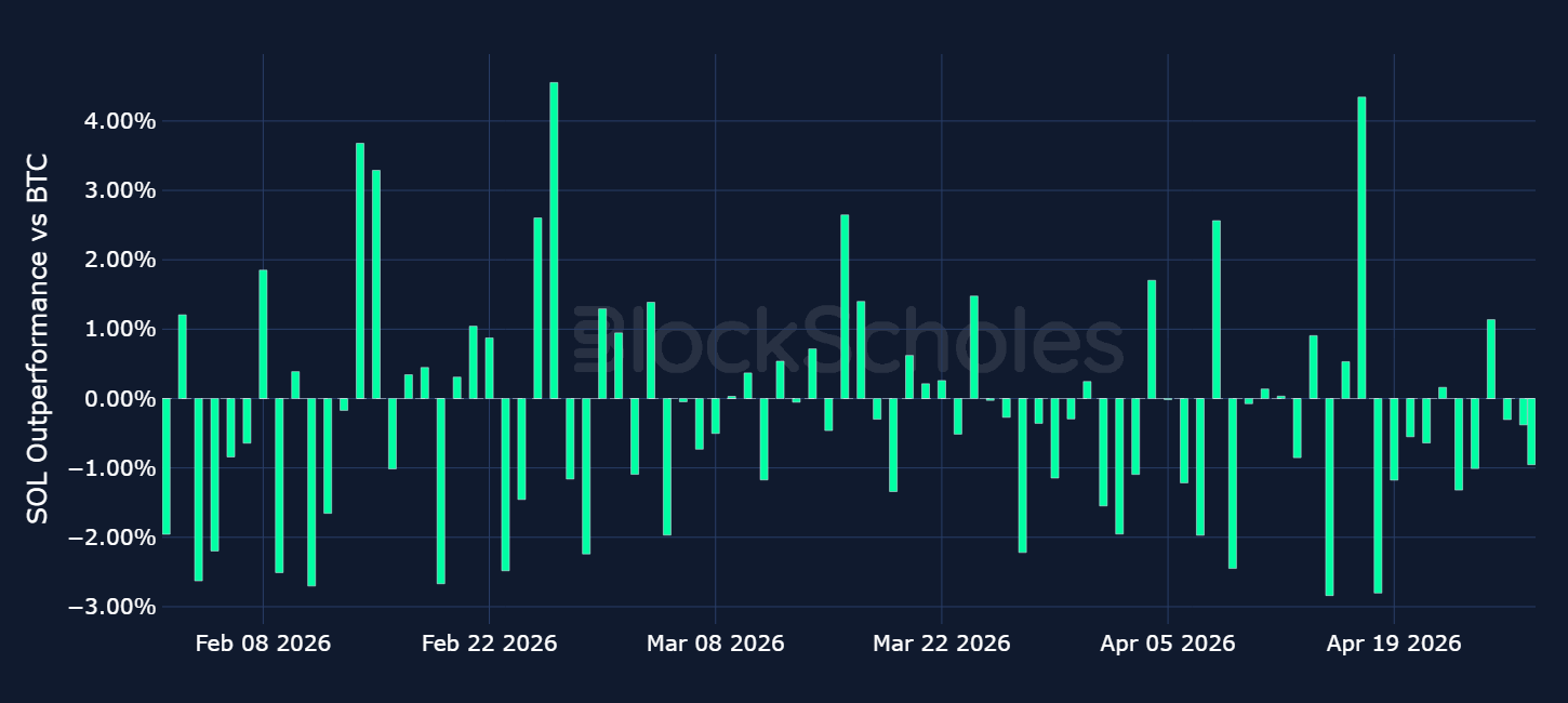 Daily relative simple returns vs BTC: SOL