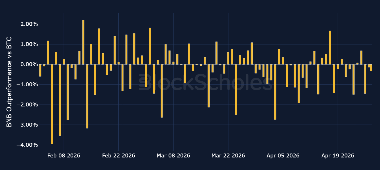 Daily relative simple returns vs BTC: BNB