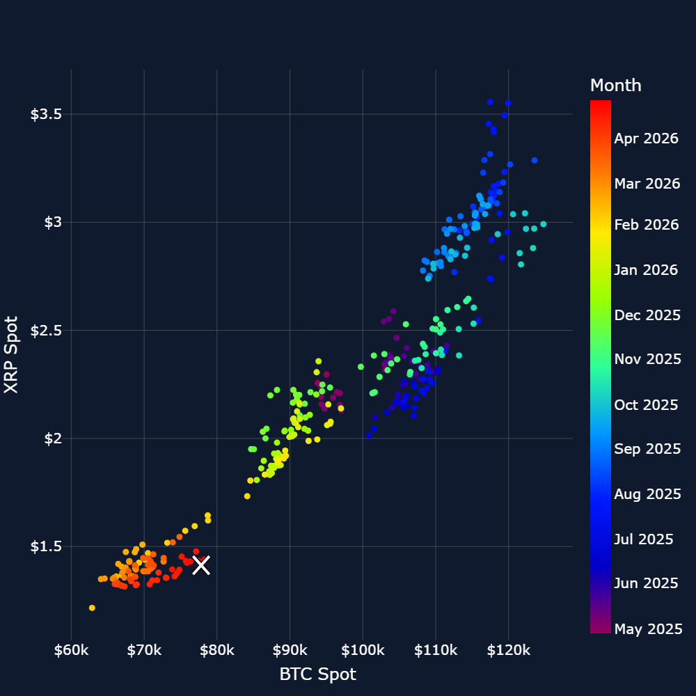 XRP Spot vs BTC Spot regression