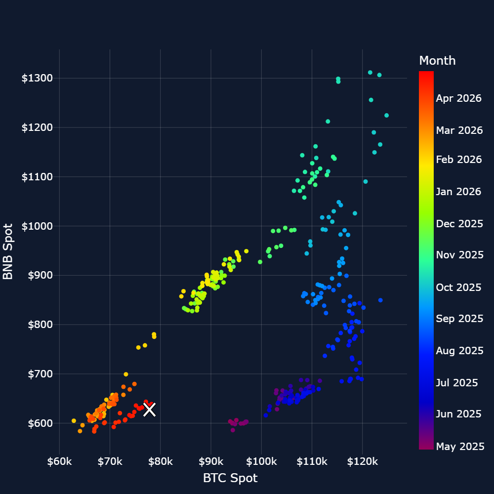 BNB Spot vs BTC Spot regression