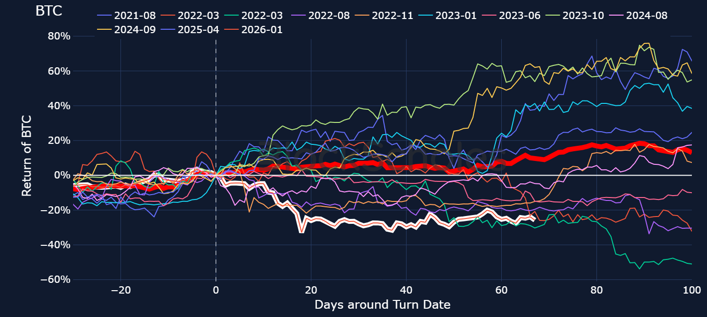 BLOCK SCHOLES BTC RISK APPETITE INDEX – As spot price holds up around $70K, our Risk-Appetite Index continues to slowly push higher. While the crossing of the -0.5 threshold from below has typically marked a bullish change in sentiment, we continue to follow the 2022 spot-price trajectory when the threshold crossing still saw BTC underperform 100 days later.