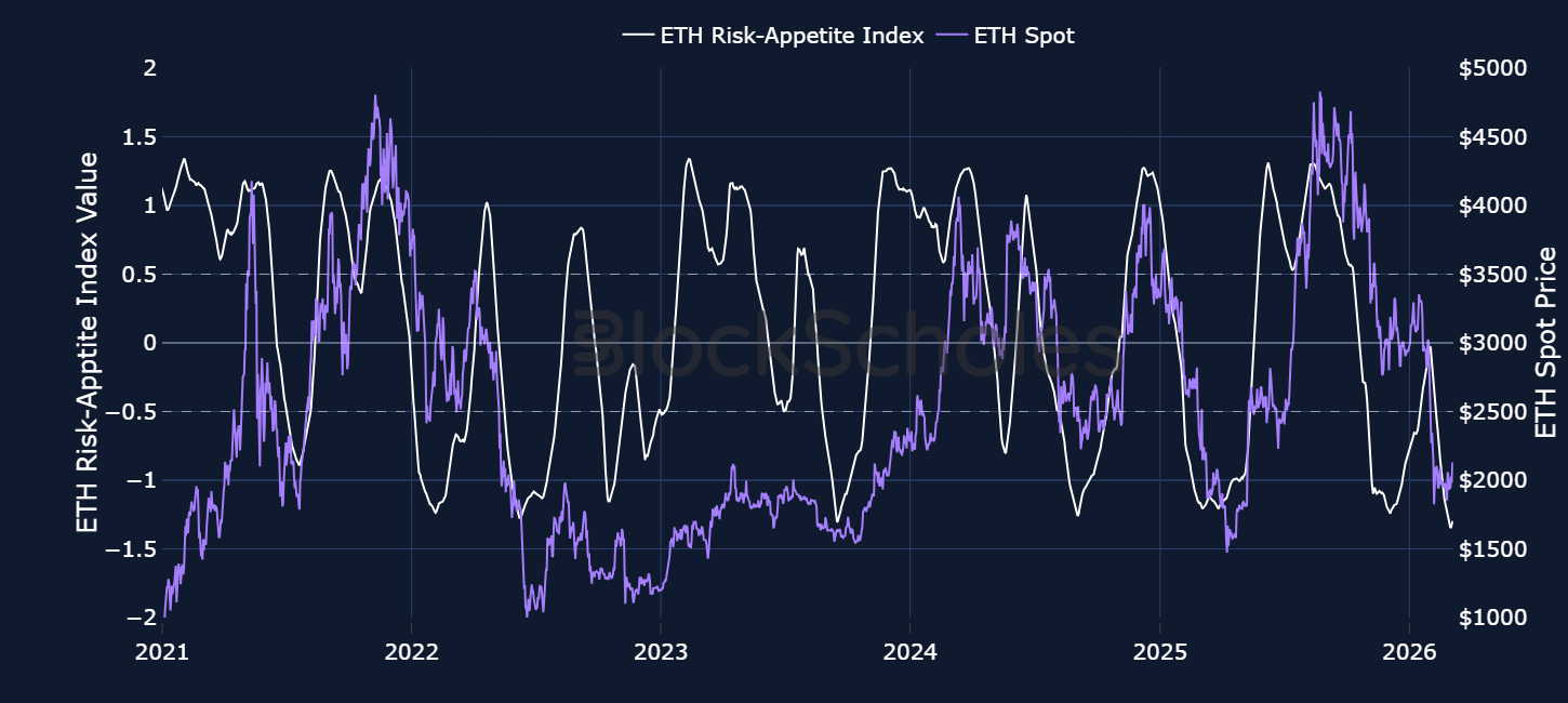 BLOCK SCHOLES BTC RISK APPETITE INDEX – The US’s weekend strikes on Iran pushed BTC briefly below $63K and our Risk-Appetite value below its December 2025 low. Since then, spot price is now trading firmly above $70K which could inspire a more meaningful bounce in risk-appetite.
