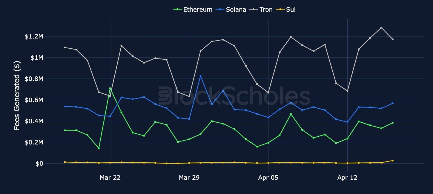 Daily Fees Generated across Ethereum, Solana, Tron & Sui