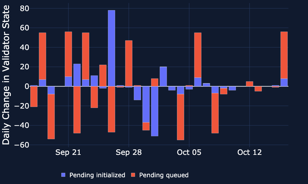 Beacon Chain Validator States - Active withdrawals steepened after their spike on September 10 and have since started to decrease slightly. Active exiting validators are also trending down, declining by around 10K.