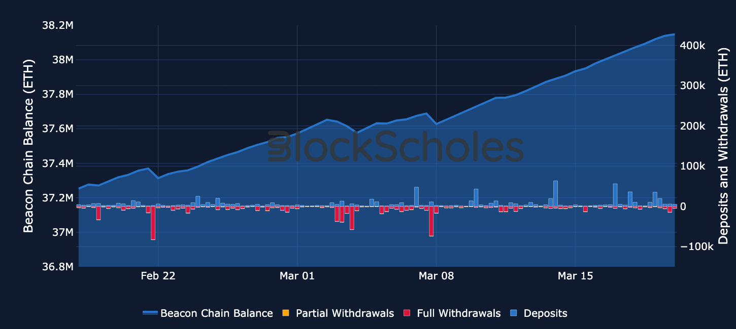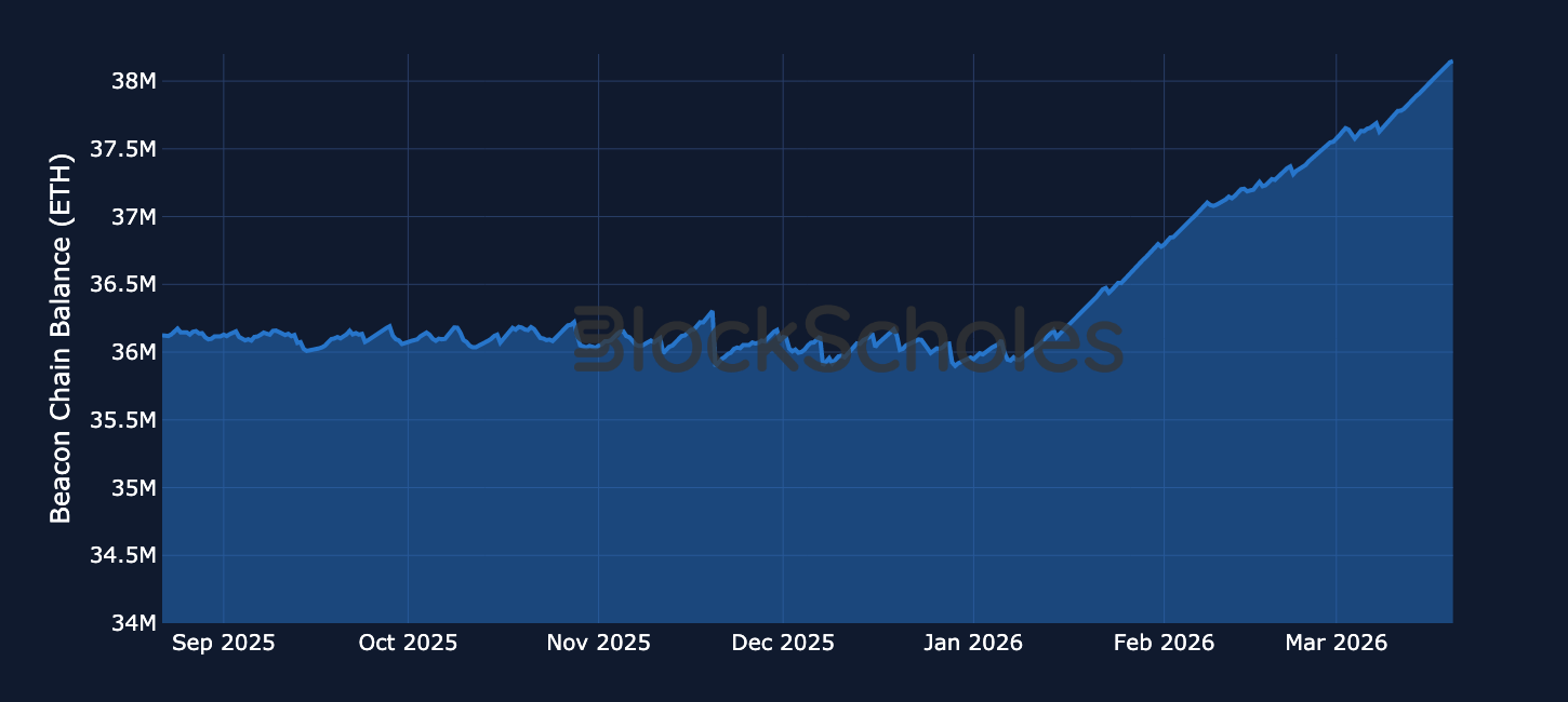 Beacon Chain - Over the past week, the Beacon Chain balance continued to edge higher, rising from ~37.8M ETH to over 38M ETH for the first time.