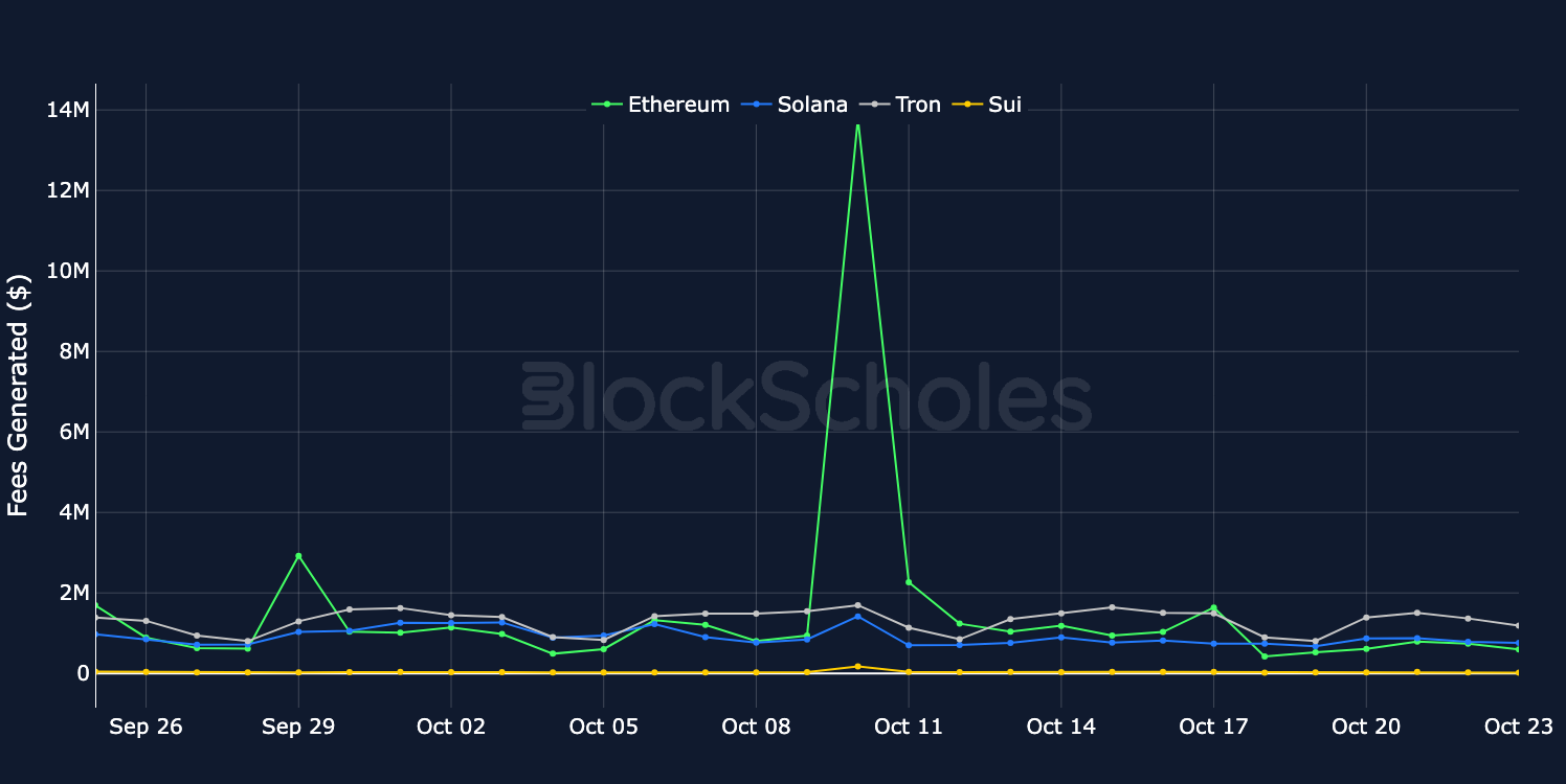 Daily Fees Generated across Ethereum, Solana, Tron & Sui