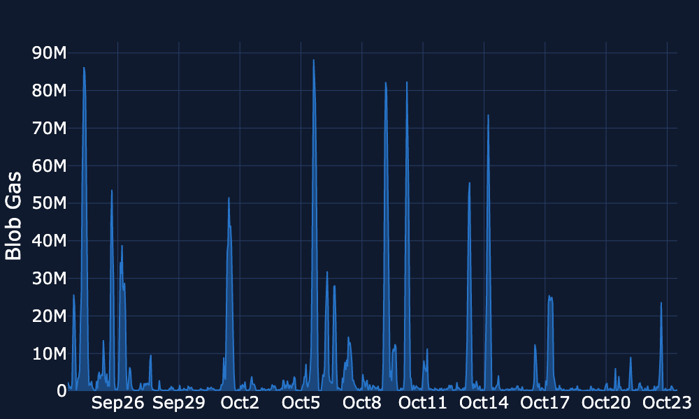 Blob Gas Usage - Blob gas activity remained muted throughout the week. The hourly average blob gas fees per Ethereum block briefly exceeded 20M only on October 23, while consistently remaining below 10M thereafter.