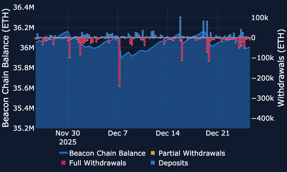 Beacon Chain - There was a brief spike in withdrawals in the beginning of this week, but afterwards levels have been steady, with no major spikes since.