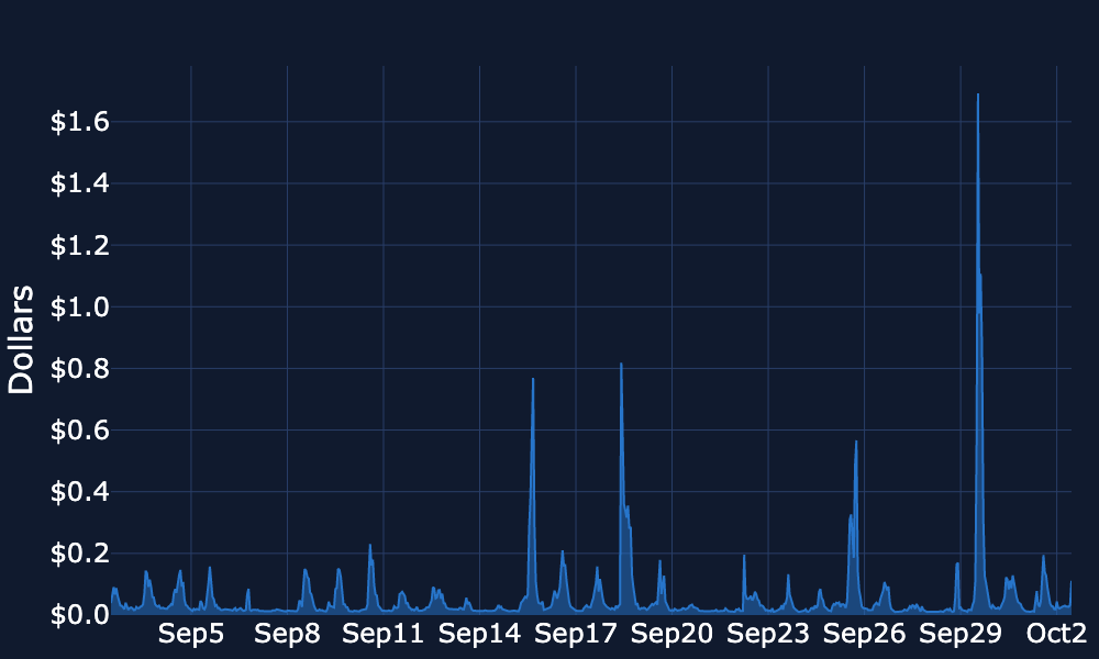 Hourly Average Cost to Transfer ETH (21,000 Gas)