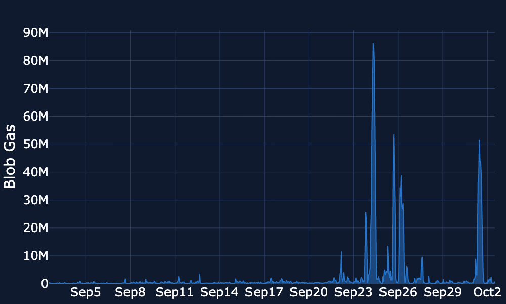 Blob Gas Usage - Usage continues to edge up, albeit with fluctuations. In early September, average blob gas usage fluctuated around 550k, while current figures are trending around 650k, reflecting the increase in Ethereum L2 data roll-ups.