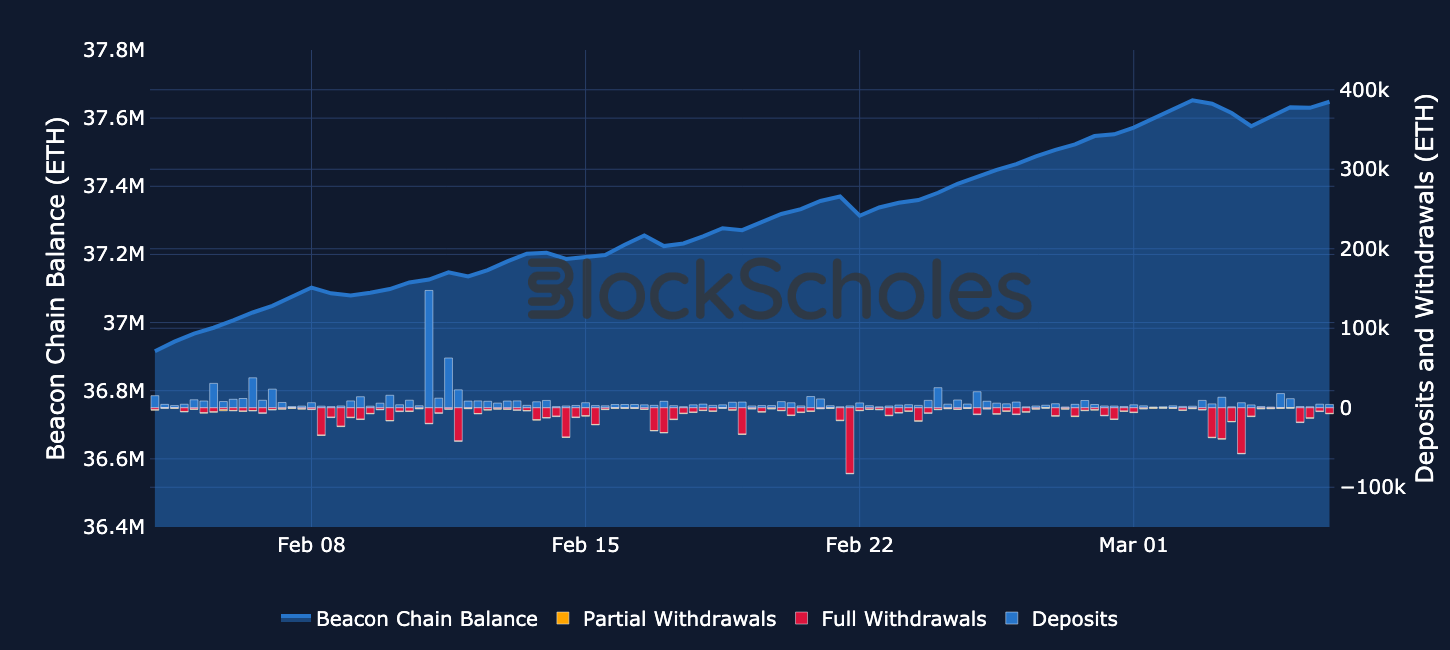 Beacon Chain - Over the past week, the Beacon Chain balance continued to edge higher, rising from ~37.55M ETH to ~37.65M ETH by the end of the period, despite a brief mid-week decrease.
