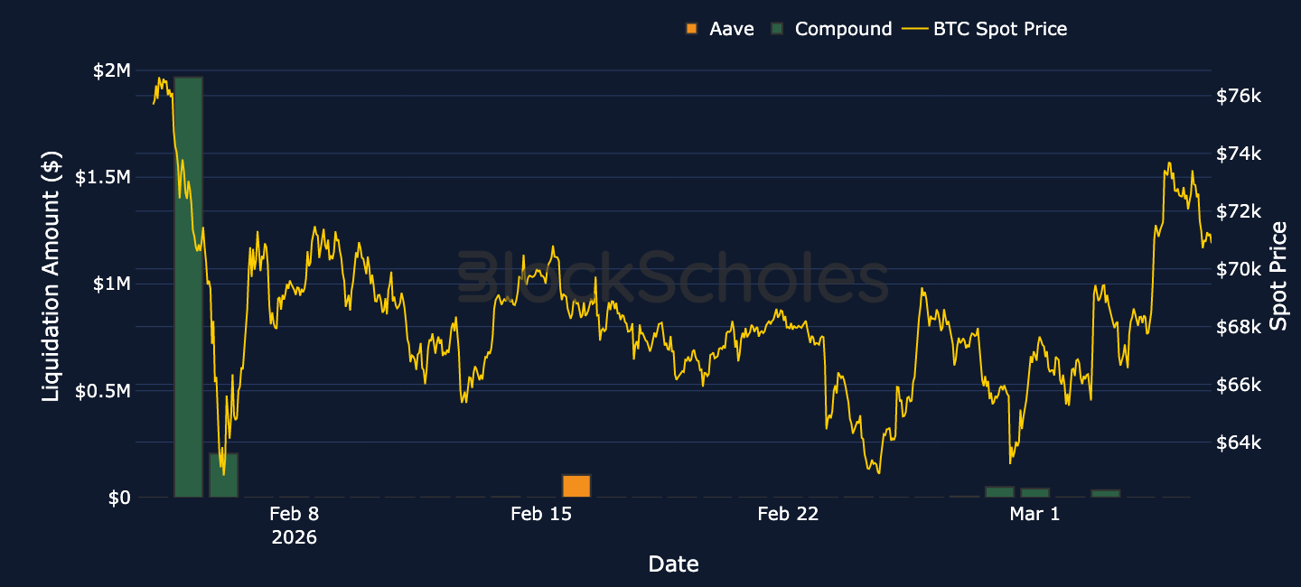 Daily Fee Generation – Over the past week, fees generated on Tron remained the highest, rising above $1.1M before easing back toward $1.0M. Fees generated on Ethereum increased from ~$0.4M to above $0.6M, before easing back to the previous level. Fees generated on Solana were initially steady at around $0.7–0.75M, then fell sharply to just over $0.1M on the 4th of March, marking the lowest network revenue in 30 days. Sui’s fees remained close to $0 throughout the period.