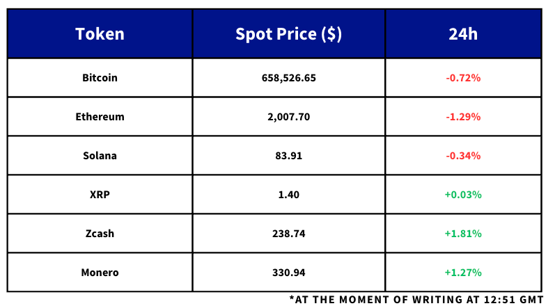 - BTC is currently consolidating around $70K, while Ether briefly slipped below $2,000 earlier today before slightly recovering back above that level.