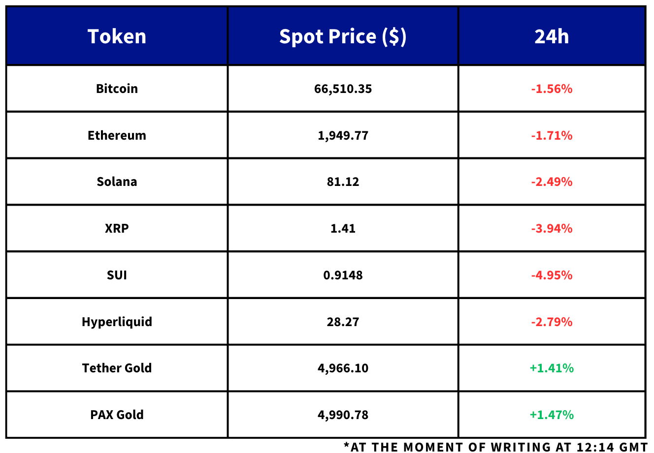 - The rest of the majors including XRP, BNB, SOL and DOGE are all down between 3% and 5%.