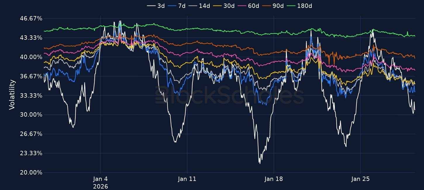 - Bitcoin hashrate is also easing, now ranging between 660-960 EH/s over the past 7 days. This is down from fluctuating around 1 ZH/s since Sep 2025 and peaks of 1.1 ZH/s just a week ago on Jan 22, 2026.
