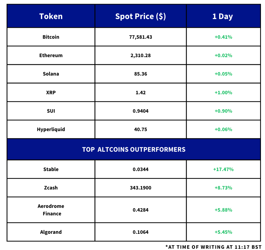 - BTC pared back some of its gains after reaching an intra-war high of $79,500 and is currently trading slightly below $78K.