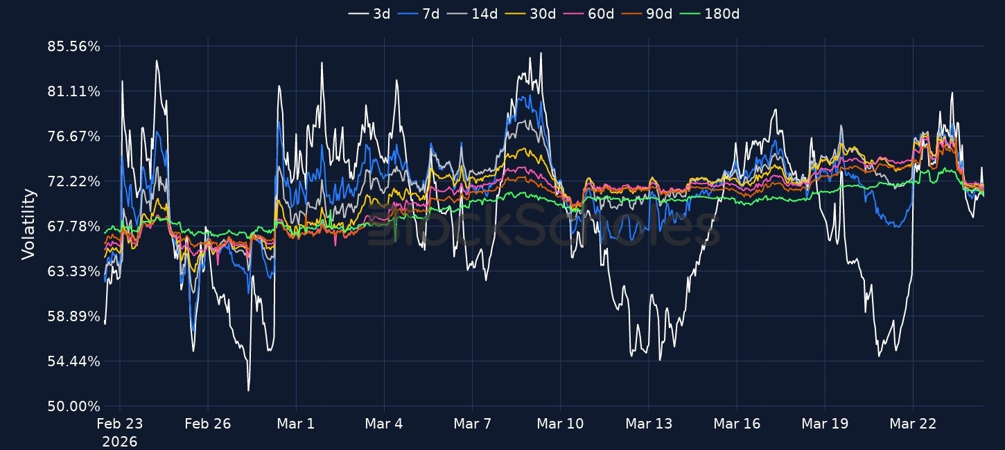 Trump’s five-day reprieve on strikes against Iranian energy infrastructure prompted a broad cross-asset repricing, with BTC rising 3.9% to hold above $70K, ETH gaining 5.3%, SOL up 6.5%, the S&P 500 advancing 1.15%, Brent falling almost 15% intraday, and Treasury yields moving lower as markets priced a reduced near-term geopolitical risk premium; Fed commentary remained cautious, however, with Goolsbee noting that rates could still move higher if conflict-related inflation pressures intensify, while Miran maintained his base case for four cuts this year, and crypto sentiment was further supported by OKX’s launch of equity perpetuals, Strategy’s expanded issuance programmes, and continued growth in Hyperliquid’s HIP-3 activity.