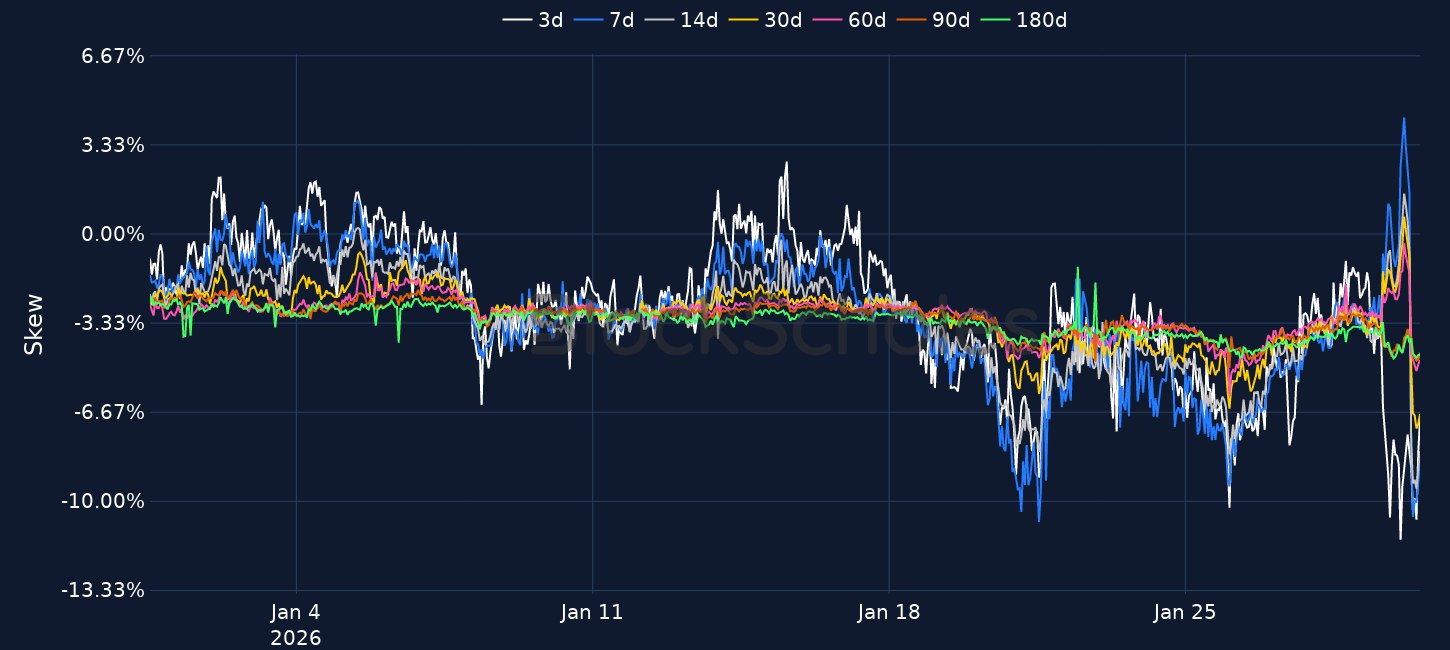 A broad risk-off move over the past 24 hours hit metals, equities, and crypto simultaneously, with sharp losses in gold and silver, US tech stocks sliding on AI profitability concerns, and Bitcoin falling to a two-month low near $81K amid heavy ETF outflows. The selloff lifted short-dated crypto volatility, coincided with a rebound in the US dollar, and unfolded alongside key policy and industry developments including Kevin Warsh’s nomination as Fed Chair.