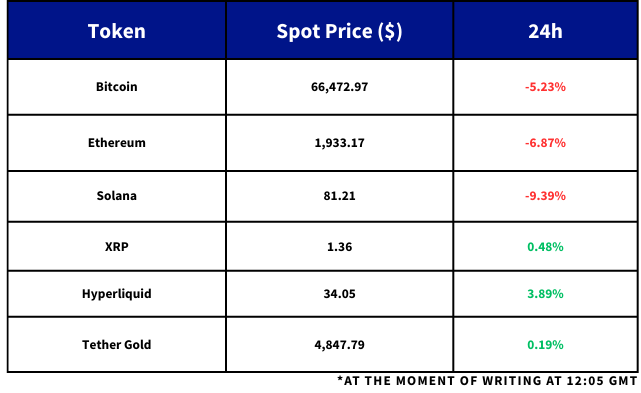 - The wider market of altcoins have been hit even harder — ETH fell below $1,800 and is currently down 11% over the past 24 hours, SOL has fallen 13% to $80, while XRP is down close to 10% — all three tokens falling through major support levels.