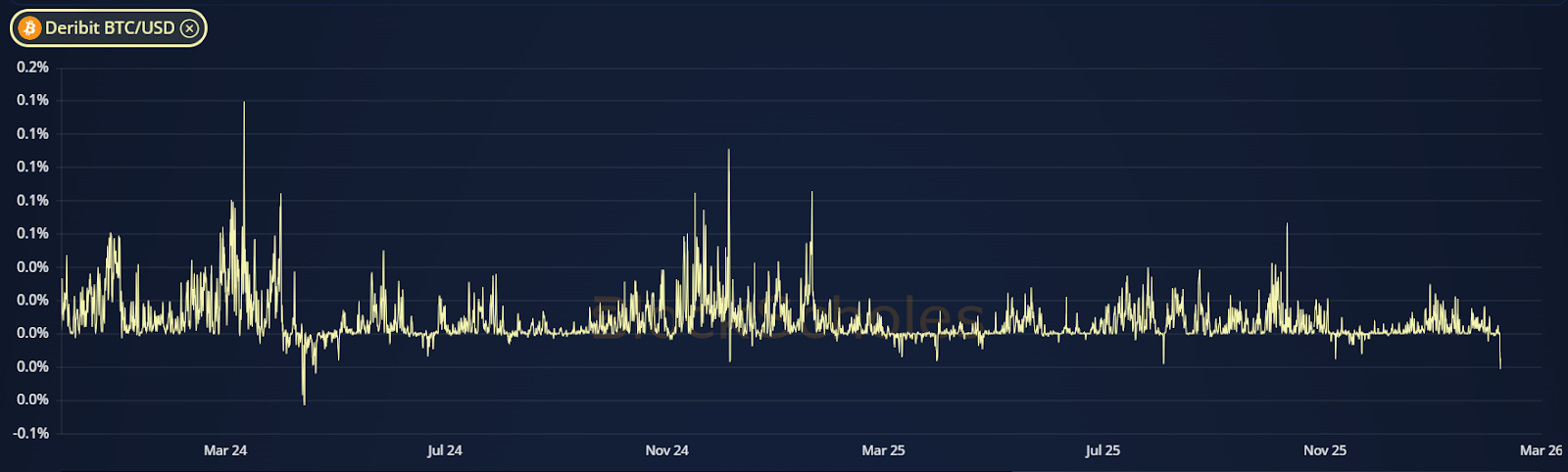 - Funding rates have plunged negative, particularly for BTC with 8-hourly rates falling to levels last seen in December 2024 (-0.02%) — an indication of outsized demand for short positions.