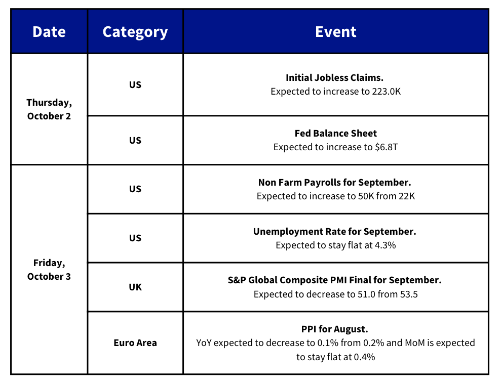 - That response in the bond market may have been exacerbated by the likelihood that Friday’s NFP report may not be released amidst the ongoing federal government shutdown.
