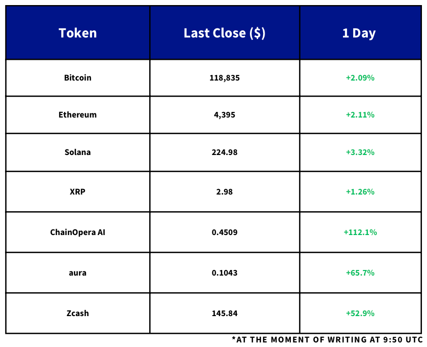 - A month that is often dubbed ‘Uptober’ by those in the crypto hemisphere is certainly living up to its name – at least two days in. Over the past 24 hours, BTC has surged nearly 4% from $114K to $118K, while ETH is up 6% over the same period, trading just shy of $4,400.