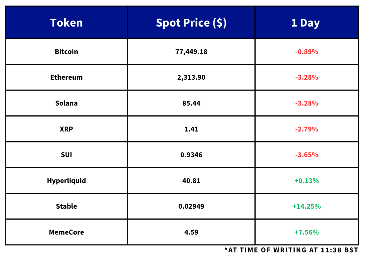 - In a move that occurred alongside US equities reaching new all-time highs, BTC rallied to as much as $79,500 yesterday, a level it last traded at in the tail-end of January this year.