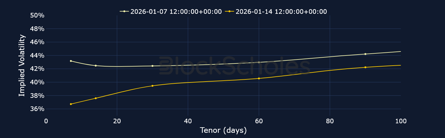 That move in the spot price has had some impact on realized volatility, which trades above the extreme lows we saw during the Christmas break, but still far lower relative to ETH’s history than we are used to. The current 50% realized volatility is the lowest level since before the US election in November 2024.