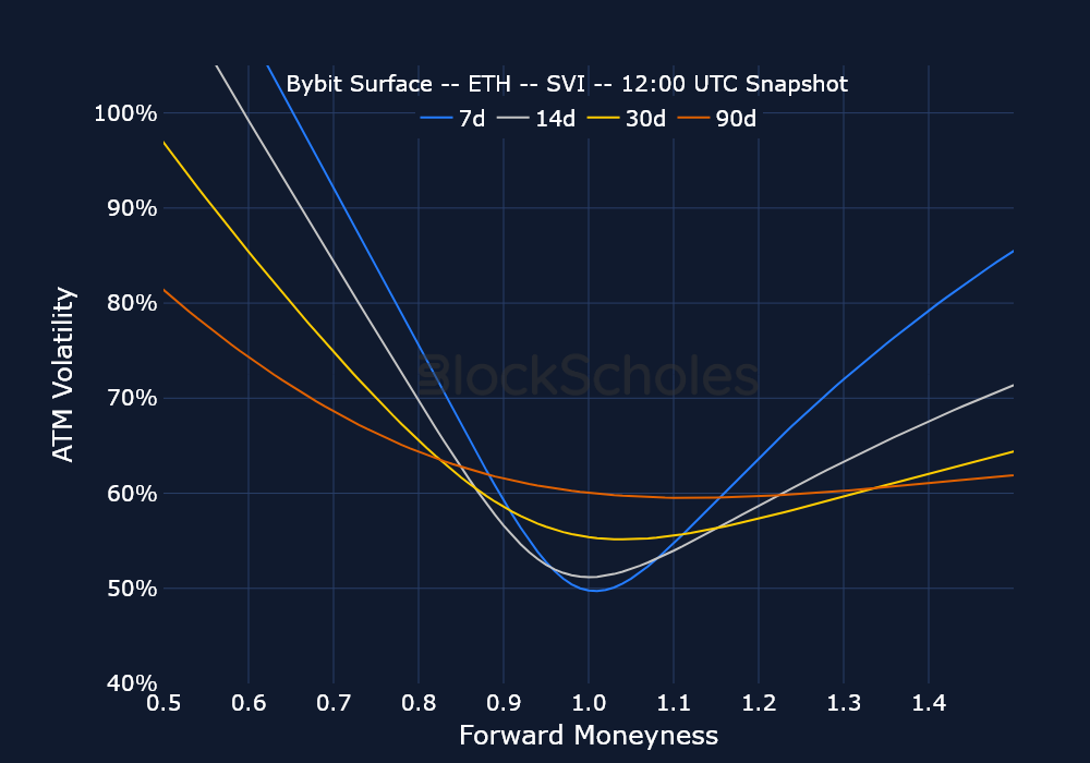 BYBIT ETH VOLATILITY TERM STRUCTURE — ETH options have given up much of the implied volatility that they saw just last week.