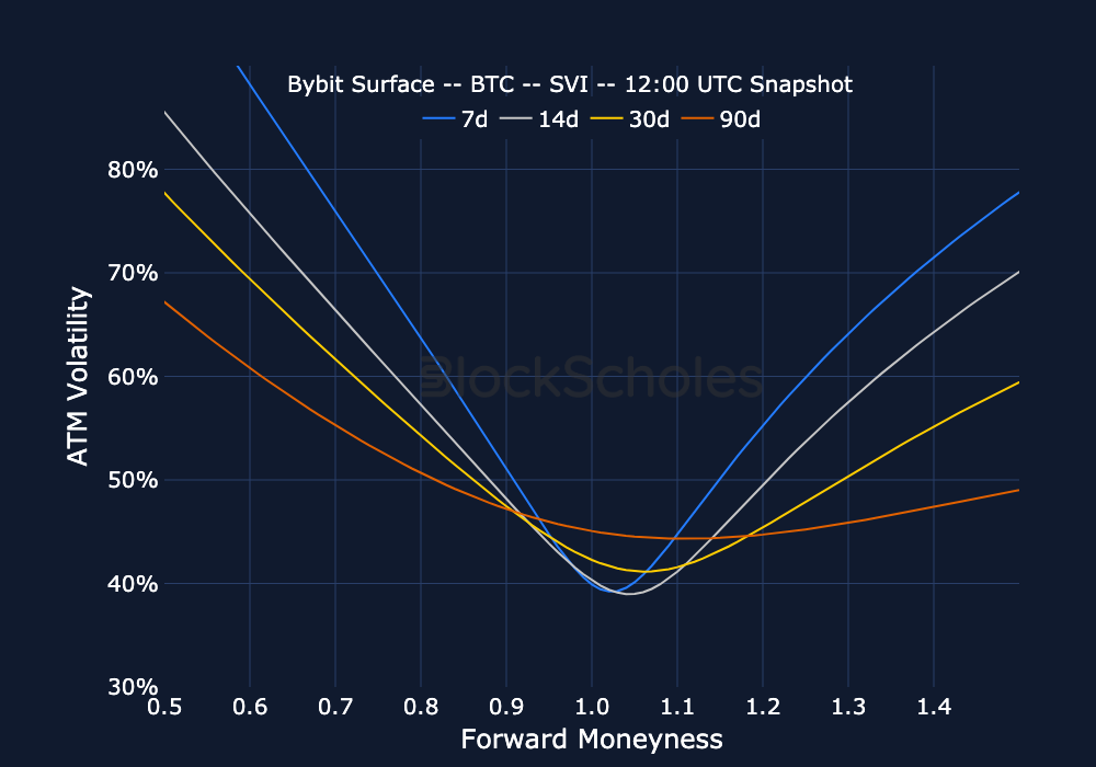 BYBIT BTC SVI ATM IMPLIED VOLATILITY — Short-dated BTC volatility trades below longer-dated, in contrast to the increased demand for short-term options that we see in ETH’s term structure.