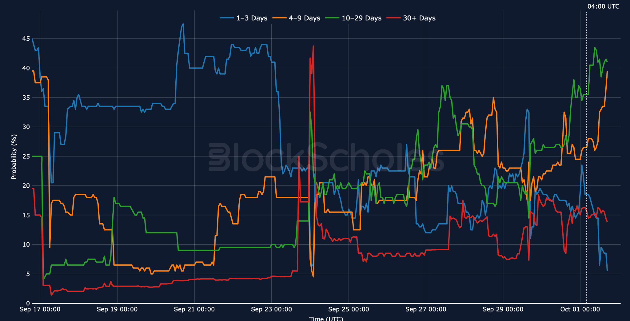 Shutdown Outlook — At 4AM UTC, Oct 1, 2025, the US government entered a shutdown. Forecasts for 2025 indicate a 40% probability that the closure will last 10–29 days, whereas a brief shutdown of just 1–3 days is seen as relatively unlikely.