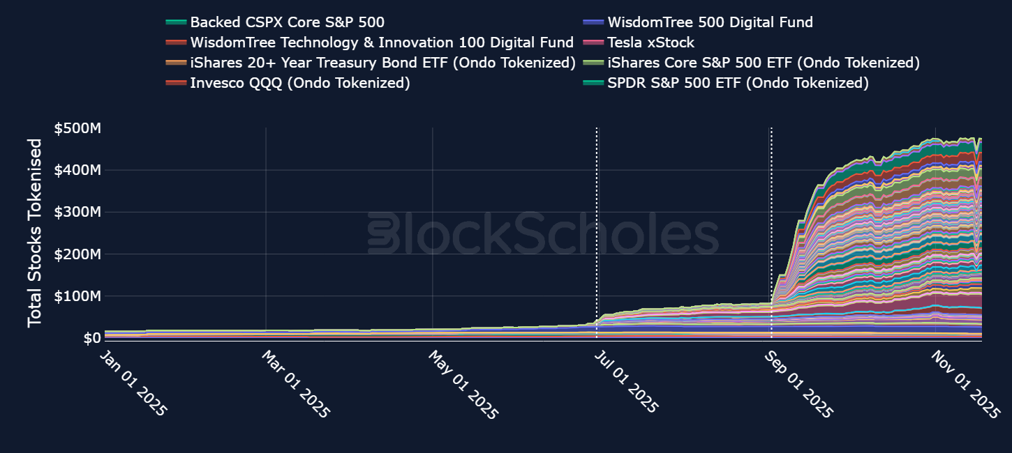 The growth of tokenized stocks is far more recent, with meaningful expansion only beginning to appear in Q3 2025. Tokenized equities at this stage are primarily aimed at retail users, with major centralized exchanges such as Bitget integrating access to these traditional finance instruments into their platforms. The increases observed in market metrics are closely linked to the timing and availability of new products.